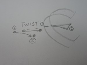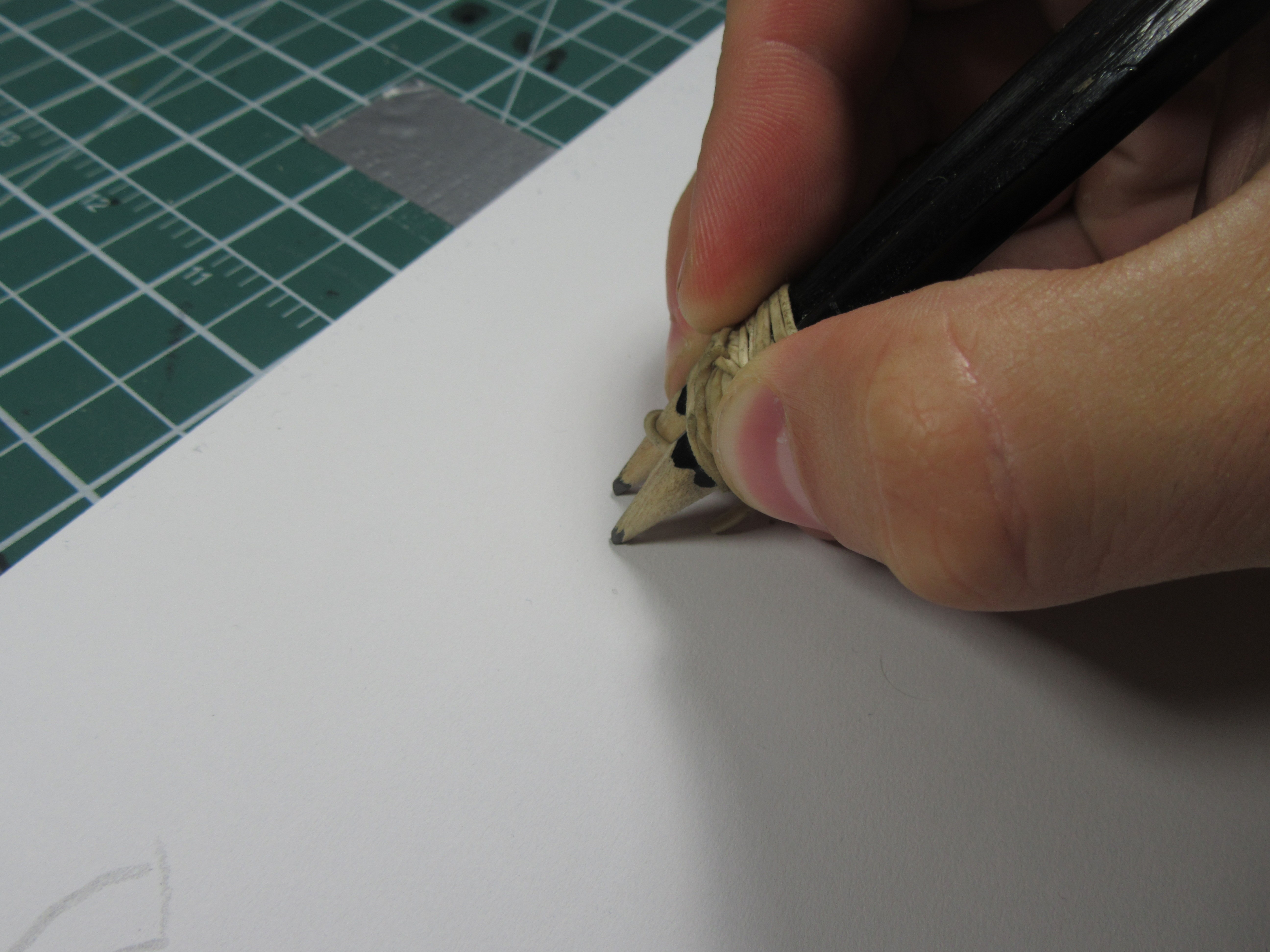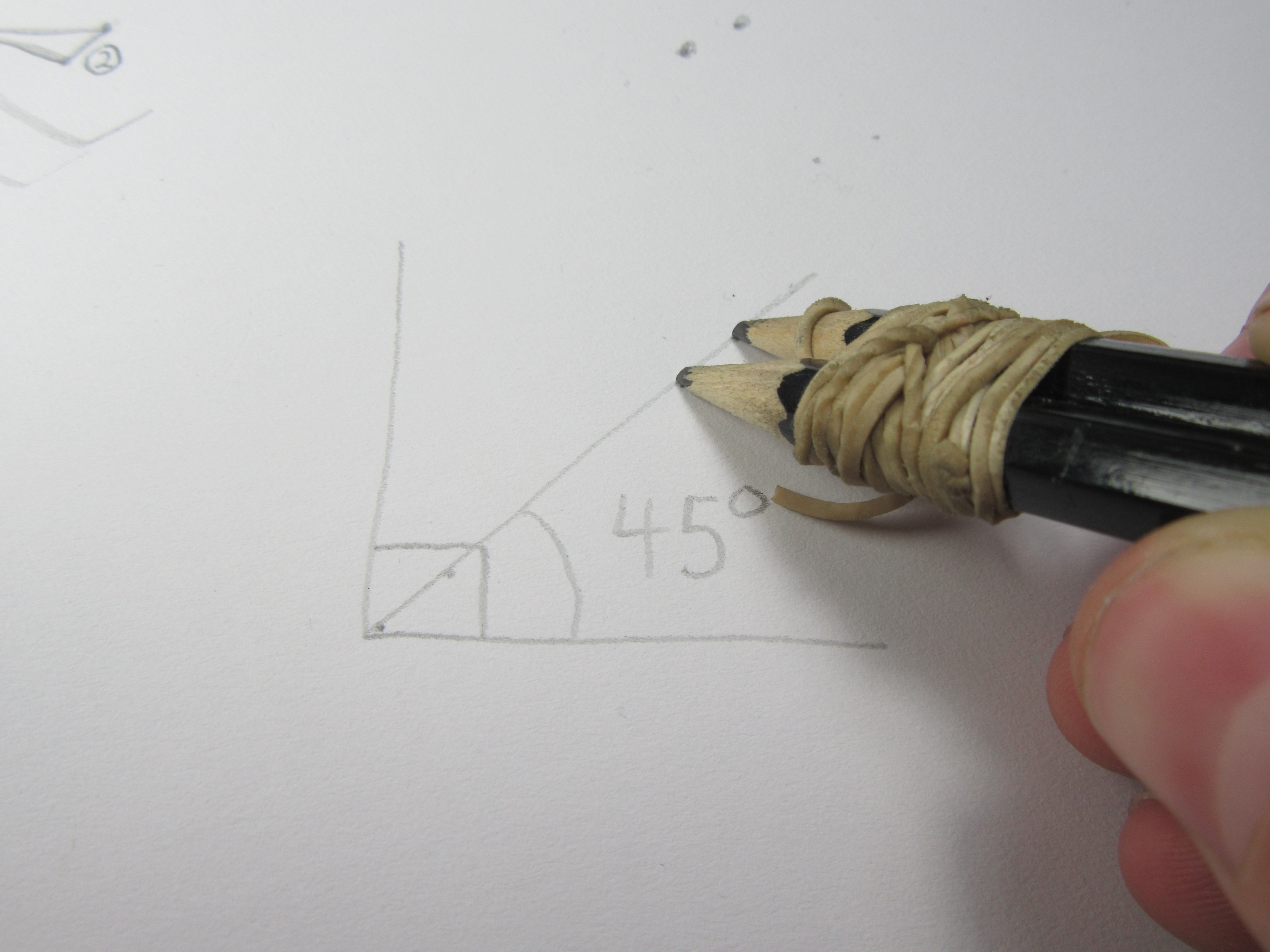 1. Once your pencils are secured together with a few elastics you must hold them like you would a normal pencil but the tips need to be at an angle of 45 degrees. (see images below)