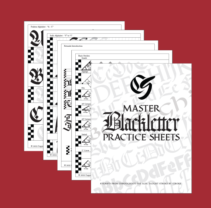 Looking for a new alphabet to learn? Or maybe want to give an alphabet another try with deeper learning? In depth practice sheets are the gift to give. They can bring any beginner calligrapher to a better understanding on how to write calligraphy. Download the PDF and print them out on some good paper you have yourself a powerful tool. I have other sets of practice sheets called “Master Class” which were hand crafted to be a “one stop shop” for learning a given style of calligraphy. One time through the material will give you enough to make your own compositions.