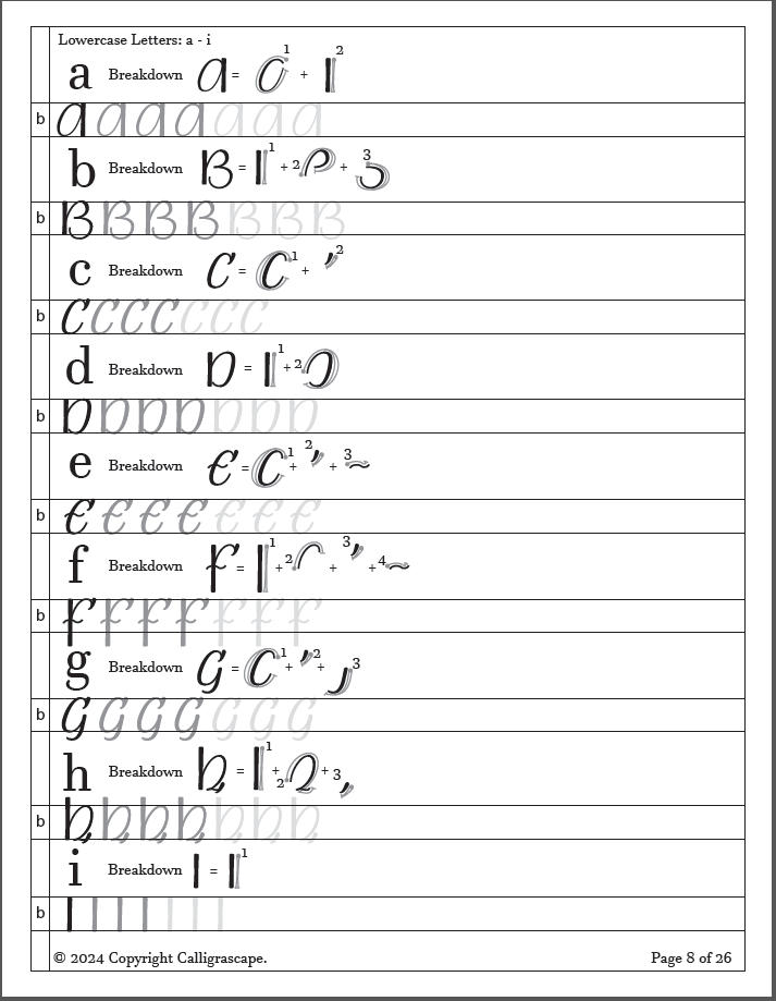 - Pointed Pen Uncial alphabet with stroke order, pressure and direction (26 Letters)