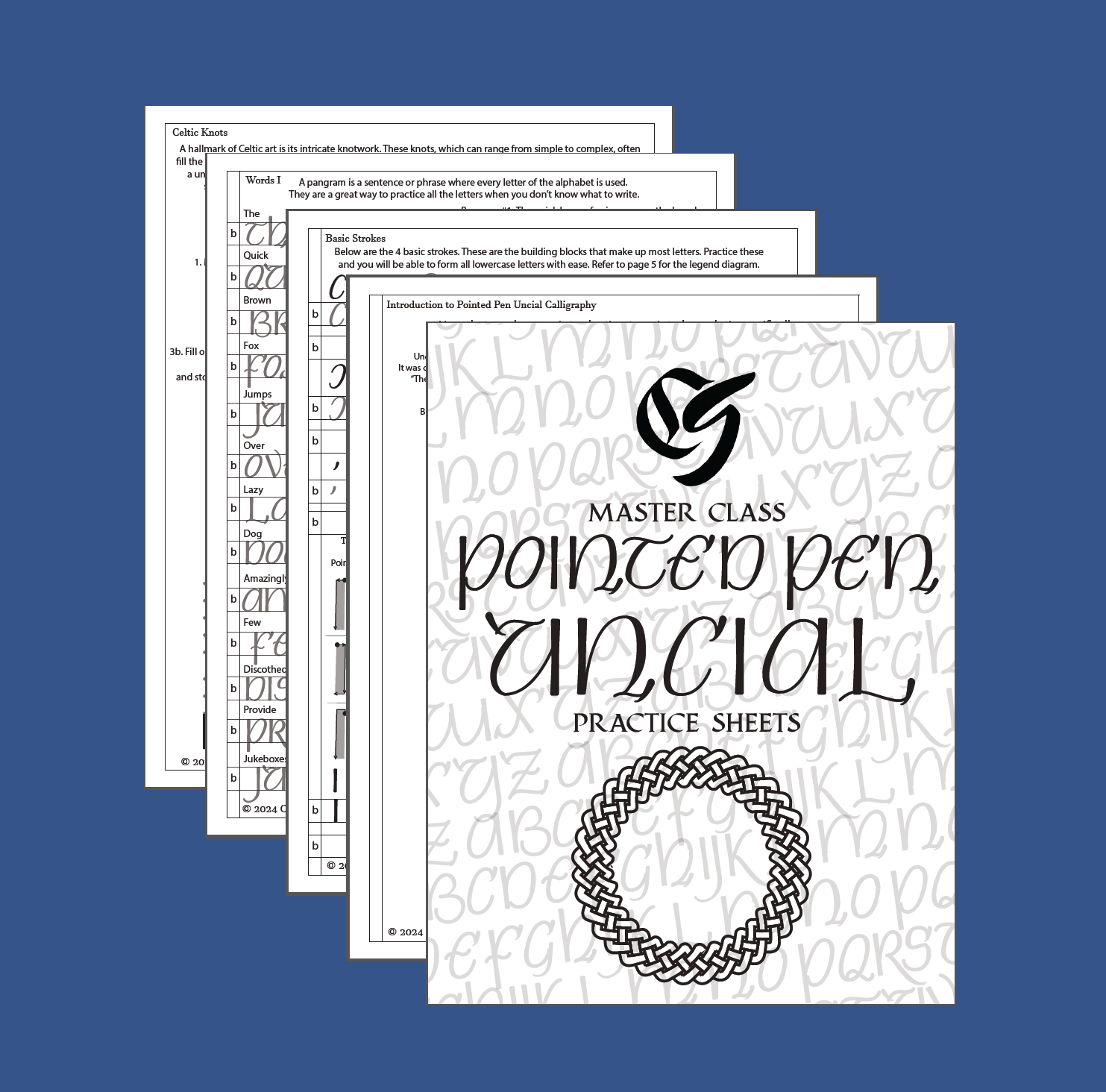 Master Class Pointed Pen Uncial Calligraphy Practice Sheets