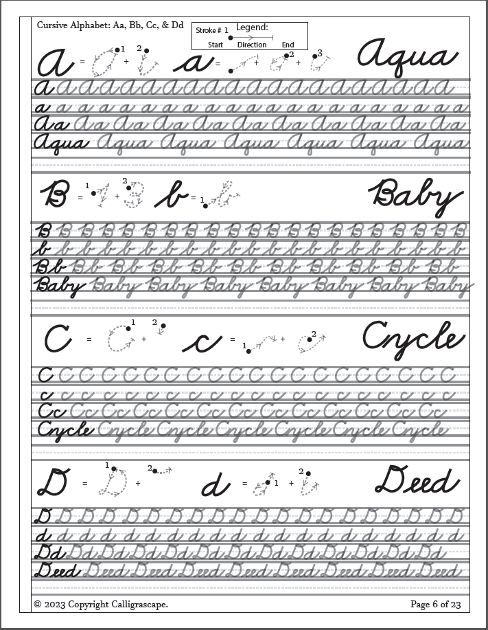 This 23 page PDF workbook is a beginner friendly “one-stop-shop” for learning cursive handwriting. All of the relevant information in one place and everything you need to learn and practice.